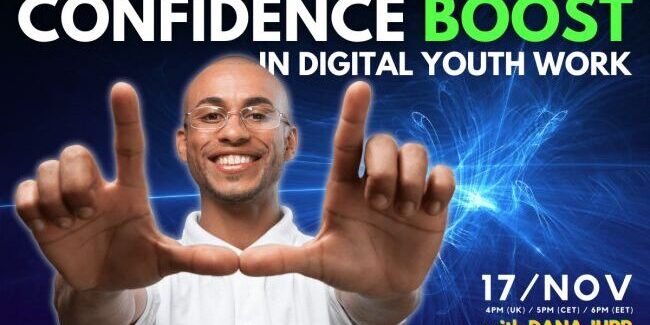 The online ZOOM event – Confidence Boost in Digital Youth Work with Dana Jupp – will provide the opportunity to explore the importance of youth workers, digital practice, and ethics.