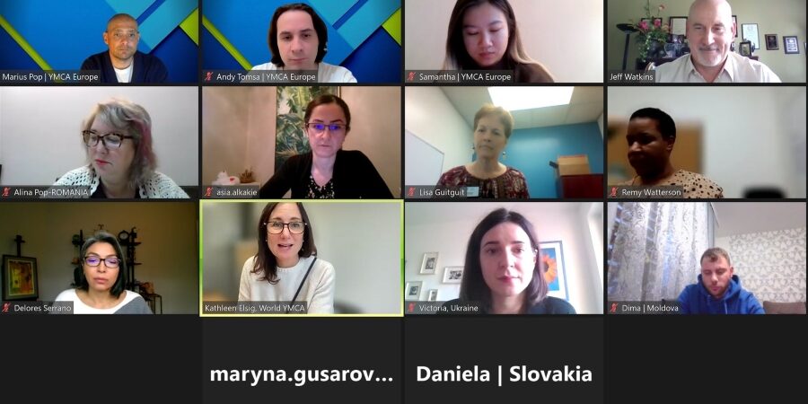 Joining the meeting from Europe were Alina Pop of YMCA Romania; Daniela Masarik of YMCA Slovakia; Dumitru Roibu of YMCA Moldova; Victoria Trofimova of CVJM Bayern; Marius Pop, Andy Tomsa, and Samantha Christian from YMCA Europe; as well as Kathleen Elsig of World YMCA.