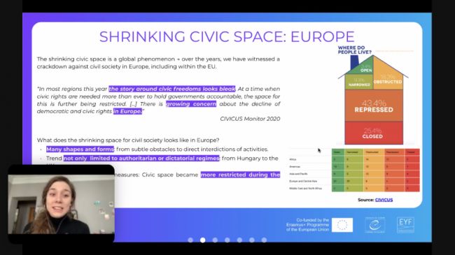 DetailsThe European Youth Forum has recently (May 18, 2021) organised an Online Workshop on Safeguarding Youth Civic Space.
